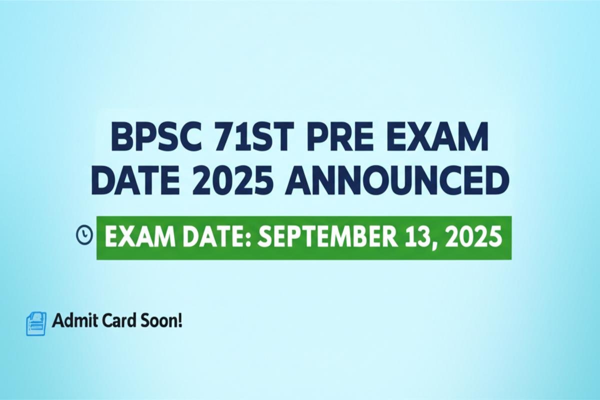 The Bihar Public Service Commission (BPSC) has officially released the preliminary examination date for the 71st Combined Competitive Examination 2025. Aspirants who have applied for this prestigious recruitment should mark their calendars as the Pre Exam is scheduled for September 13, 2025. The application window for this examination concluded on June 30, 2025. Further details regarding the admit card will be made available on the official BPSC website and `sarkariresultsx.com` soon.